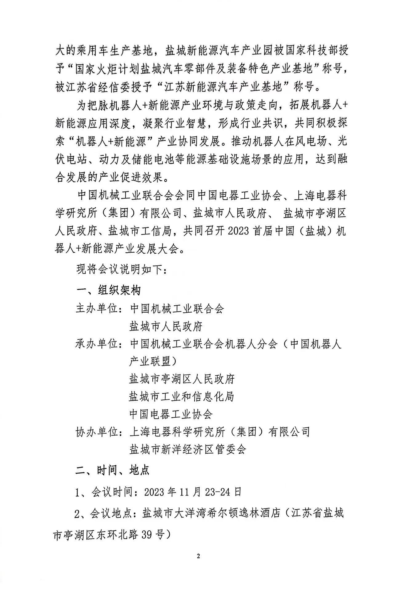 关于召开2023首届中国(盐城)机器人+新能源产业发展大会的通知