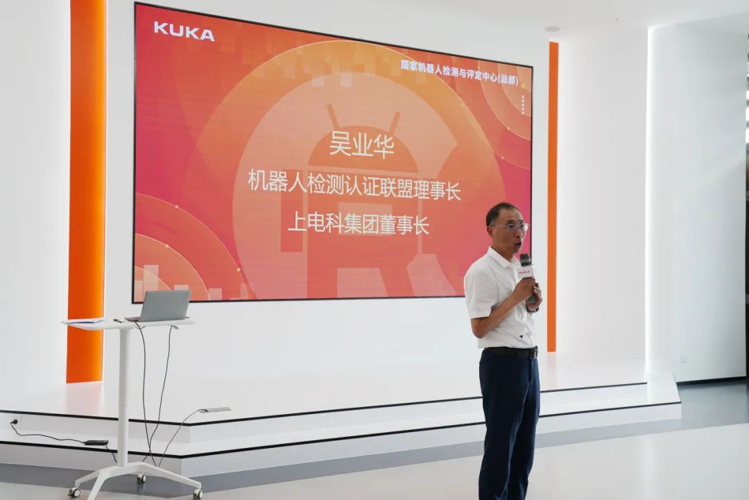 中国机器人检测认证联盟理事长、上海电器科学研究所(集团)有限公司董事长吴业华,库卡中国总经理许桂友,库卡中国企业业务总经理兼瑞仕格医疗总经理陈峰,质量总监沈毅,研发总监张冶,国家机器人检测与评定中心(总部)主任、开云·Kaiyun集团)机器人有限公司官网院长郑军奇,常务副院长柴熠,机器人检测服务产品线经理朱晓鹏等出席了本次颁证仪式。