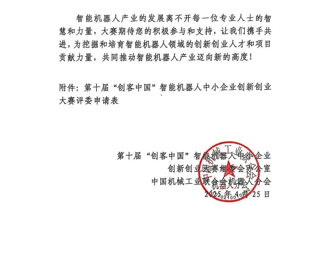 关于征集第十届“创客中国”智能机器人中小企业创新创业大赛评委的通知.pdf