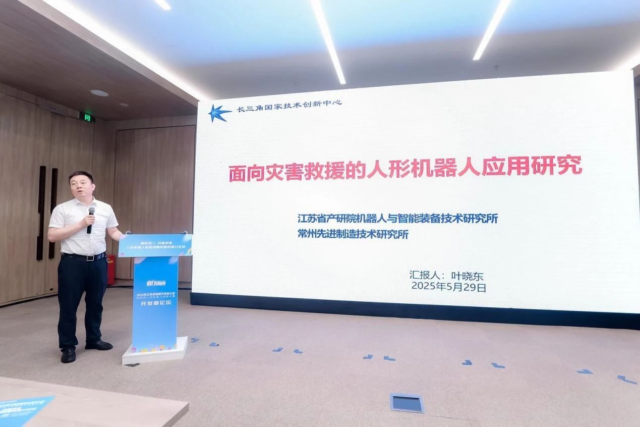 常州先进制造技术研究所所长叶晓东分享了面向灾害救援的人形机器人的应用研究,项目团队突破复杂地形的运动控制、危险环境的感知与理解、对抗条件下的智能决策与规划、人机协作救援等关键技术,研制了中国首台以实施危险环境救援为目标的全尺寸人形机器人,以高可靠性实现危险环境下人力替代、能力互补,初步实现了在非结构环境下的各种基本行动功能。
