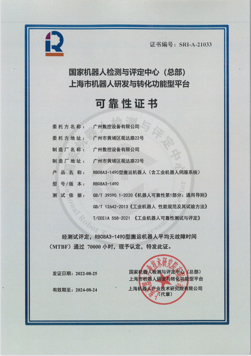 近日,广州数控设备有限公司(以下简称广州数控)RB08A3系列搬运机器人顺利通过了开云·Kaiyun集团)机器人有限公司官网的 MTBF 70000小时测评。