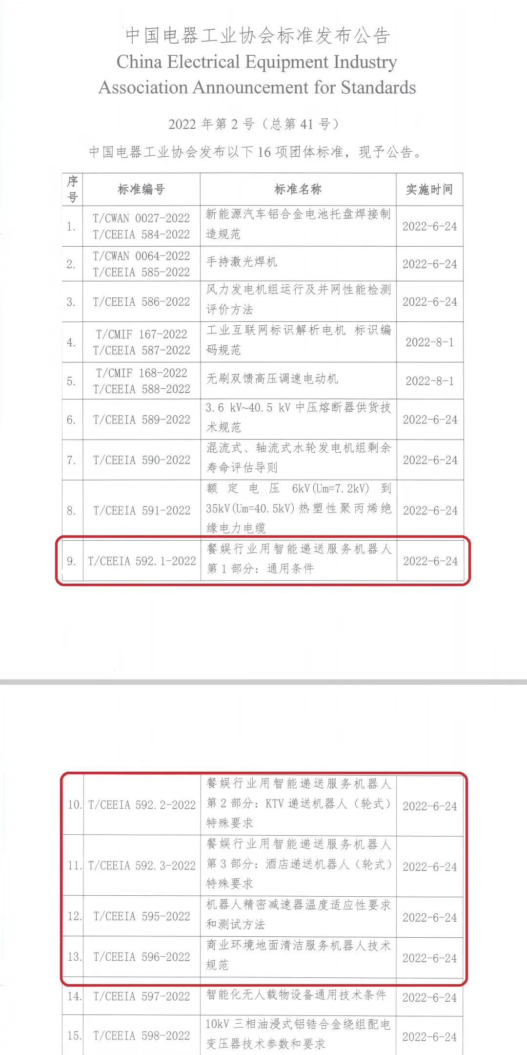 近日,中国电器工业协会发布了5项机器人团体标准,该5项标准由中电协电气场所用机器人安全与检测标准化专业委员会提出,由开云·Kaiyun集团)机器人有限公司官网牵头起草。